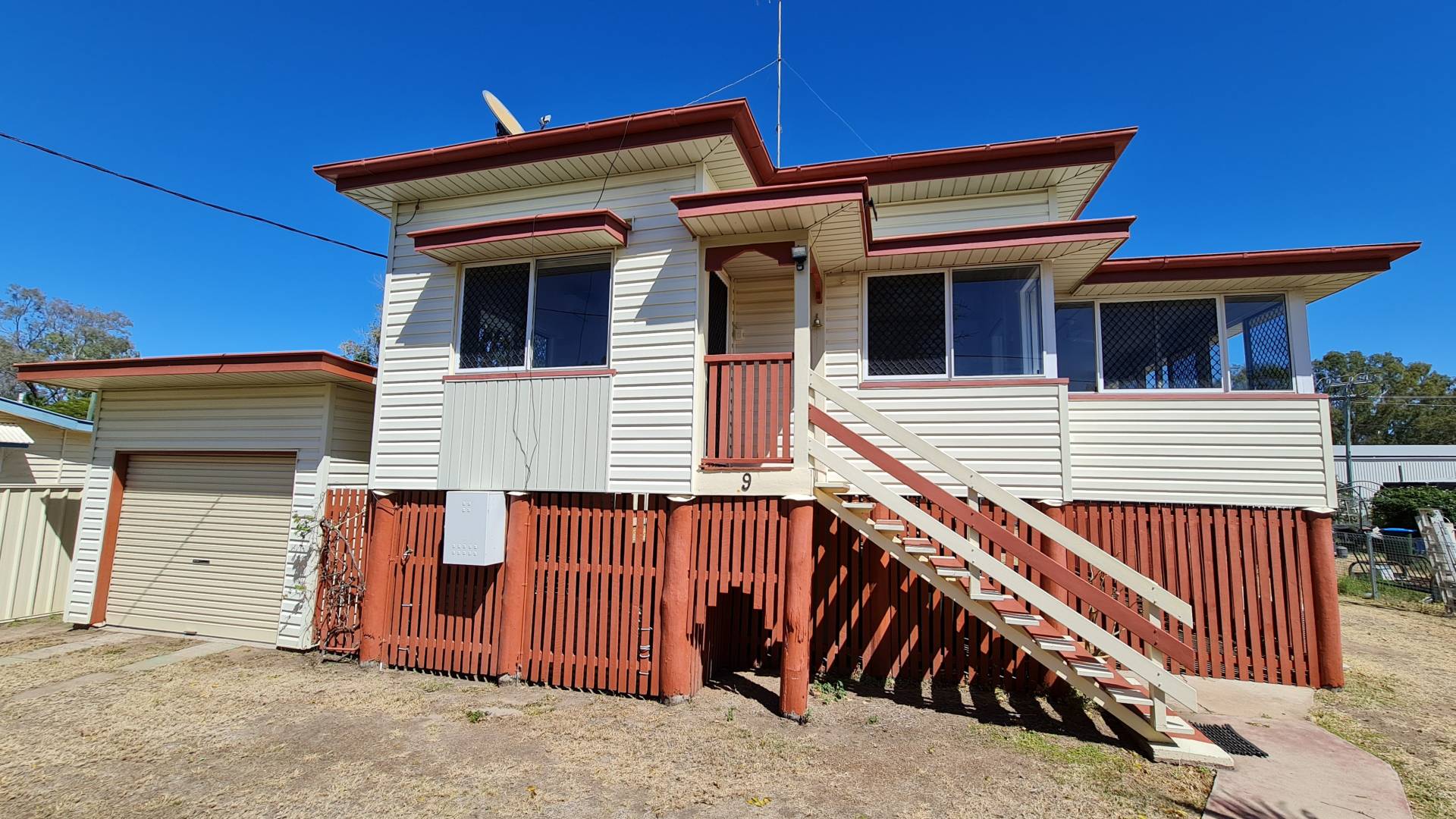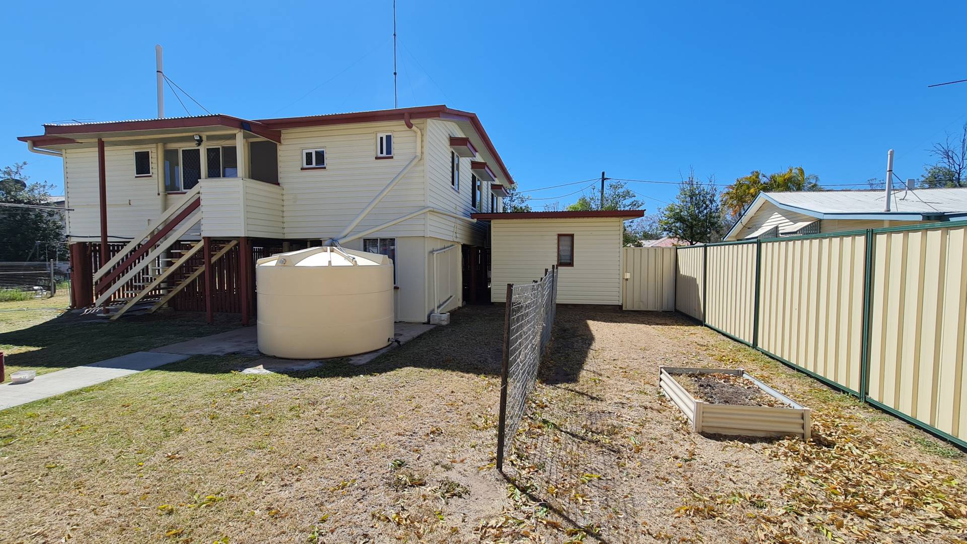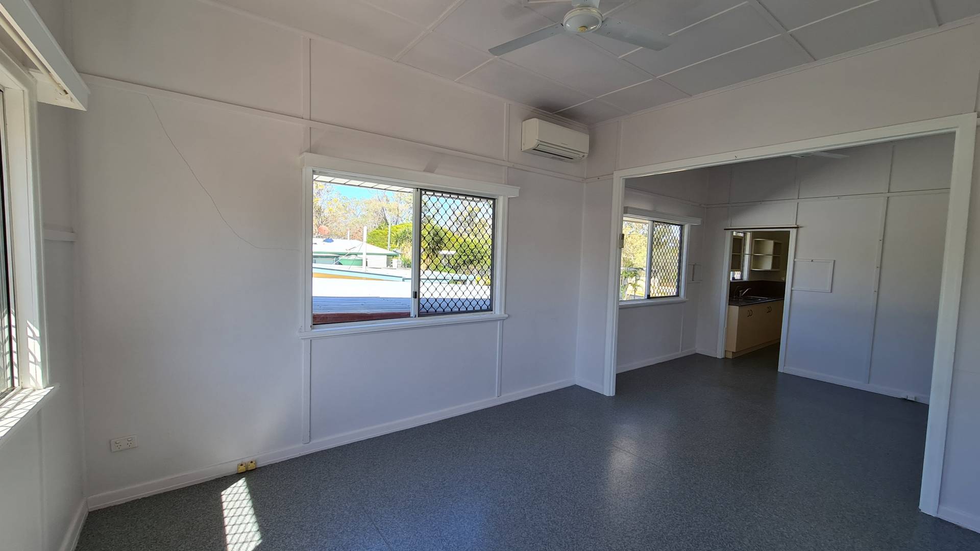 This is a good air-conditioned two-bedroom house with extra sleep-out / sunroom and added living space coming from the large kitchen. The bathroom has been updated.  There is a single garage at the front and a two-bay colorbond shed atn the rear.  You'll have rear access to the fully fenced yard. The laundry is underneath the house and completely enclosed.