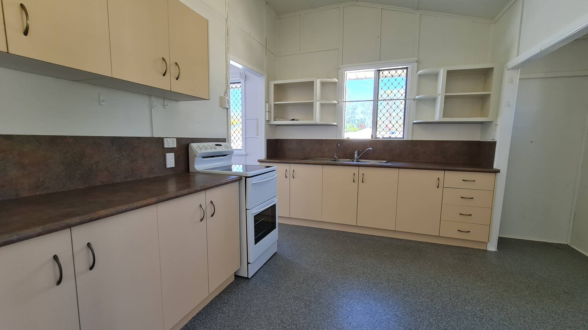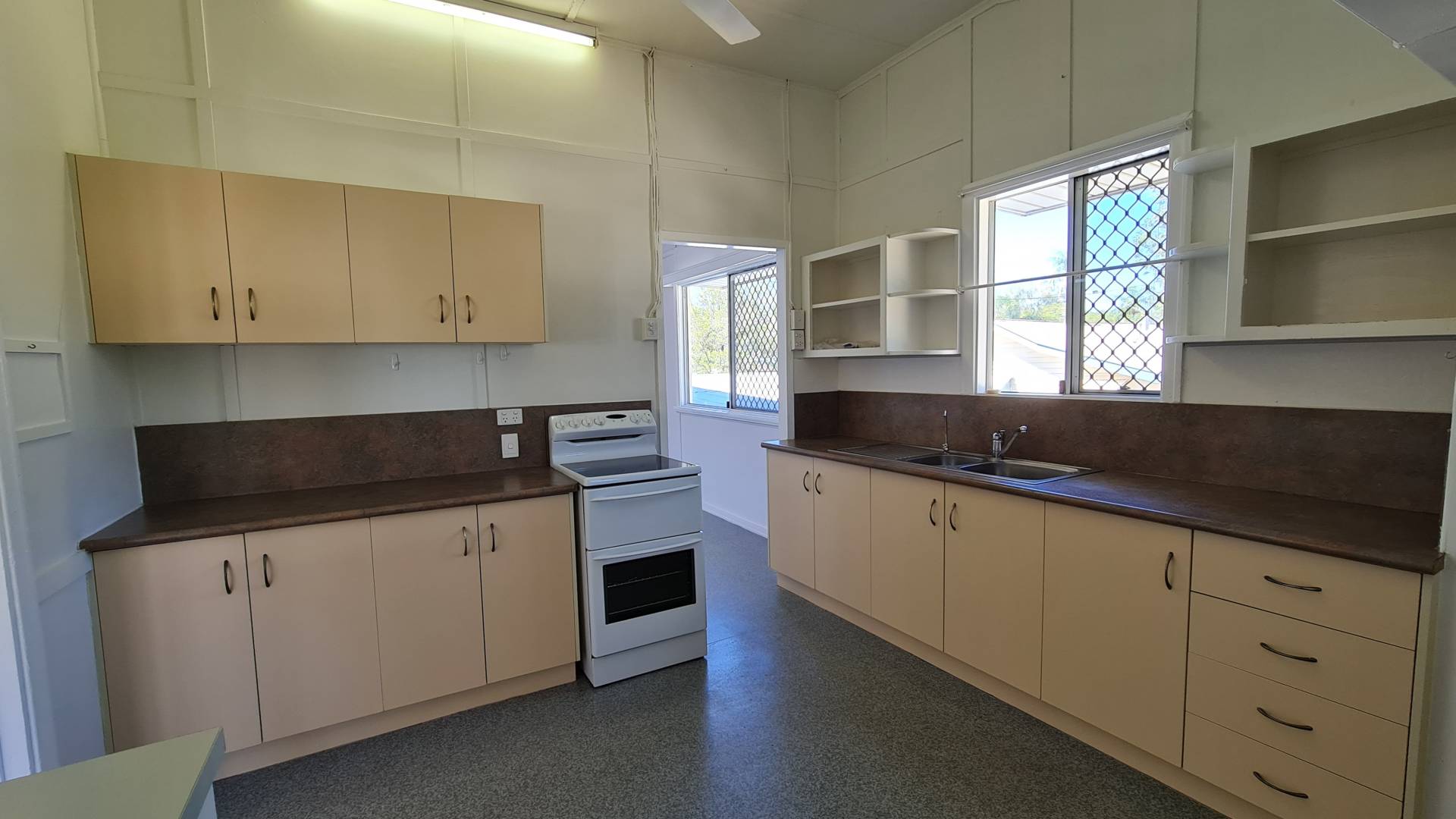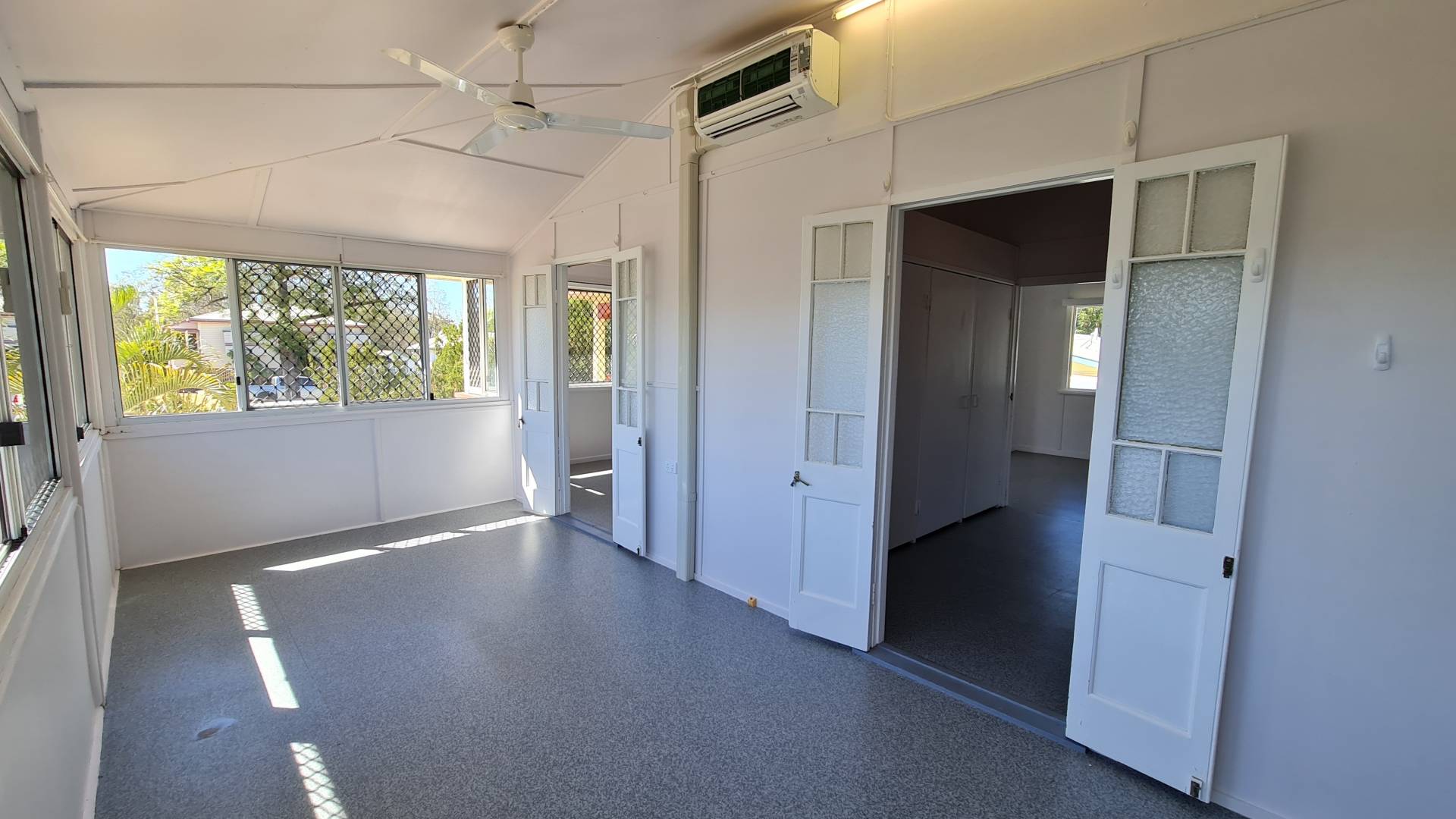 This is a good air-conditioned two-bedroom house with extra sleep-out / sunroom and added living space coming from the large kitchen. The bathroom has been updated.  There is a single garage at the front and a two-bay colorbond shed atn the rear.  You'll have rear access to the fully fenced yard. The laundry is underneath the house and completely enclosed.