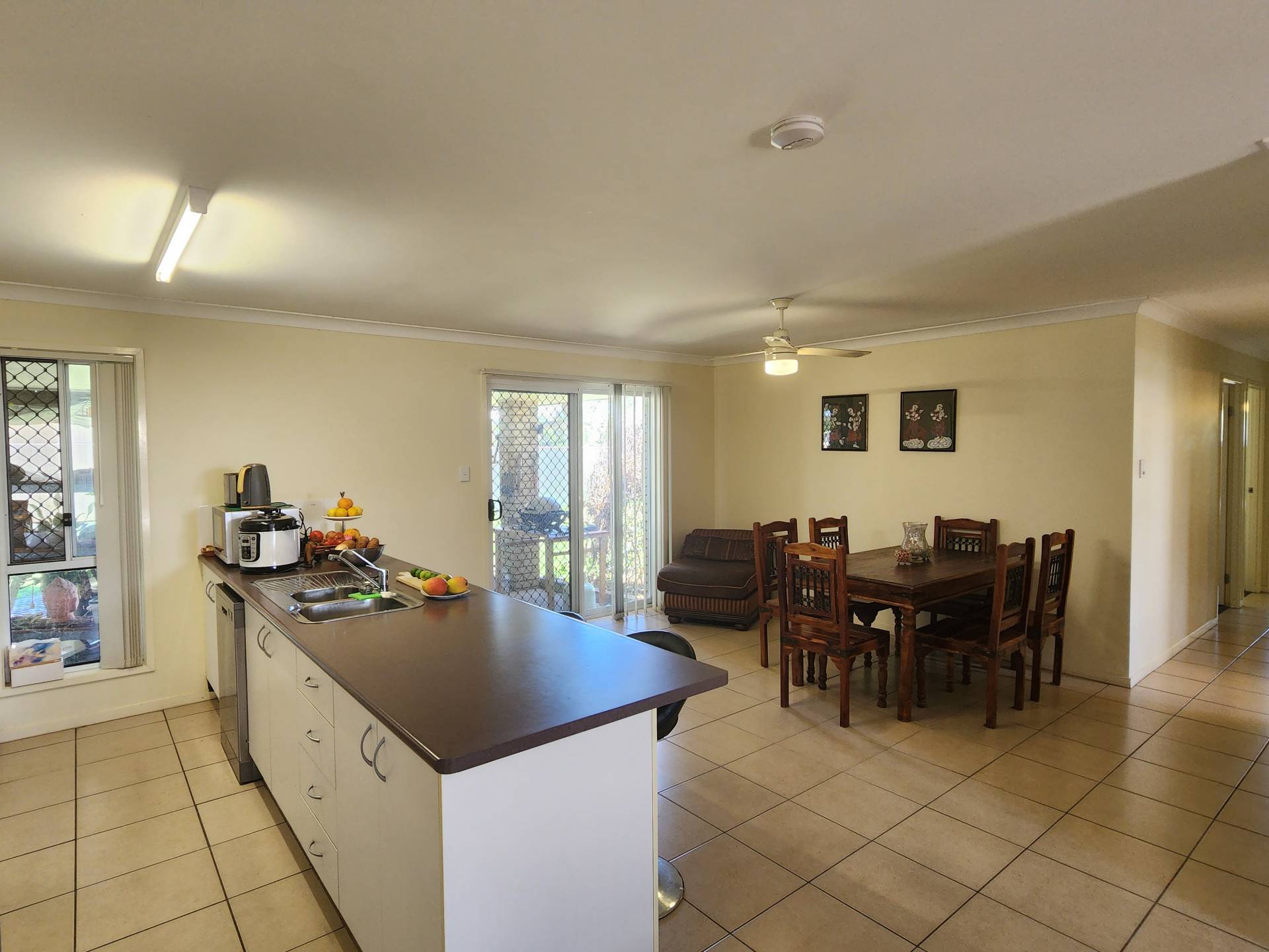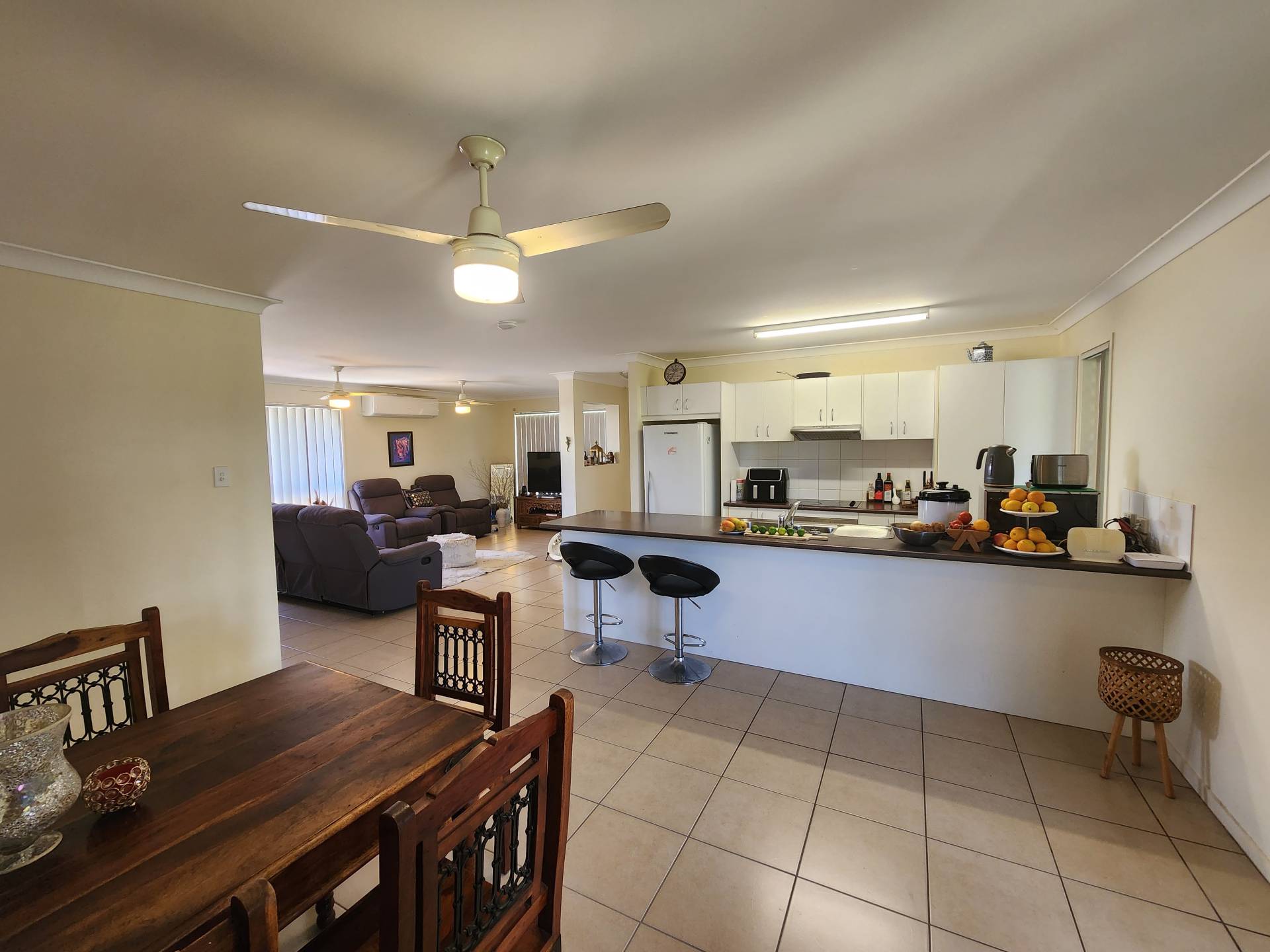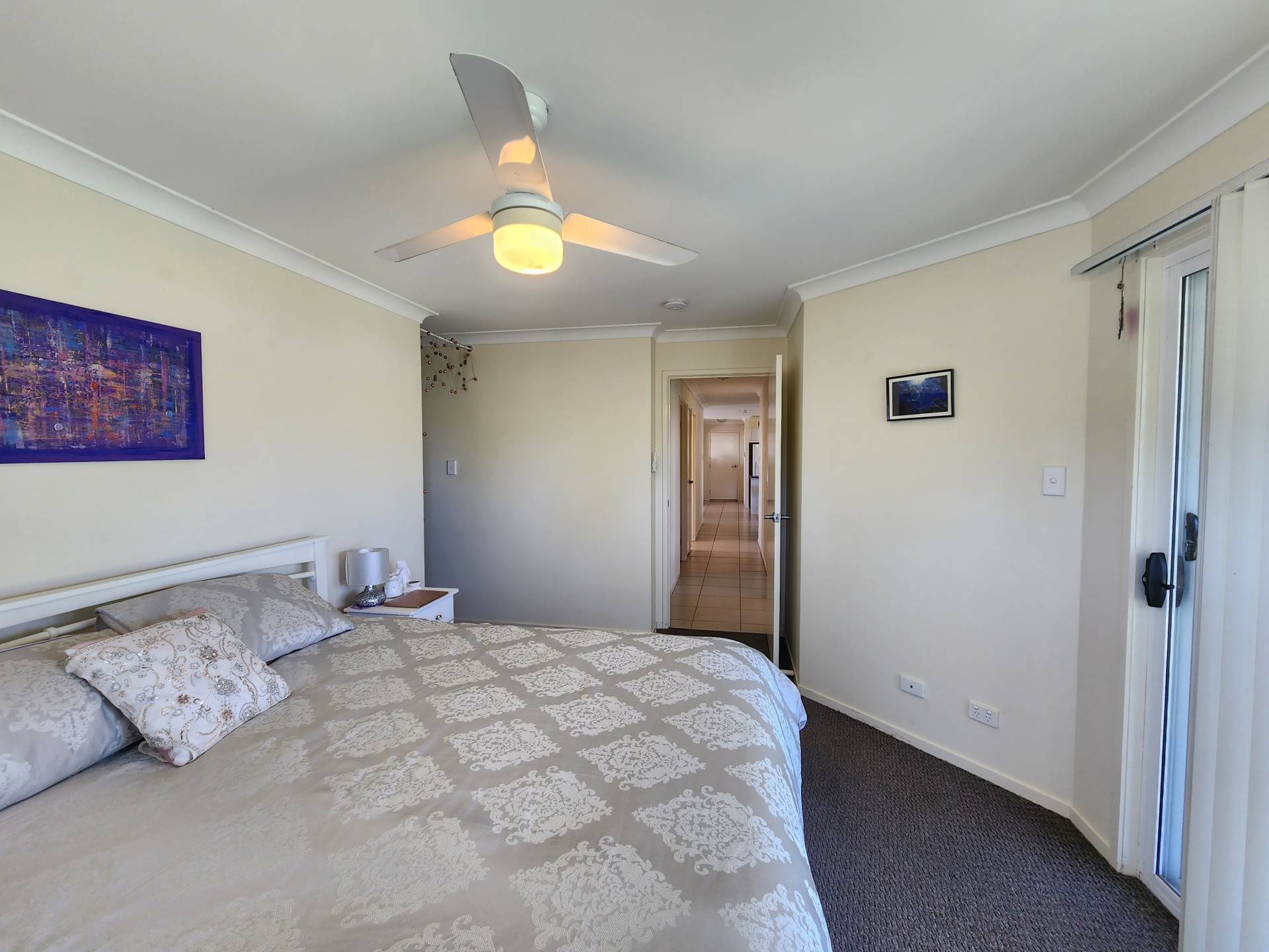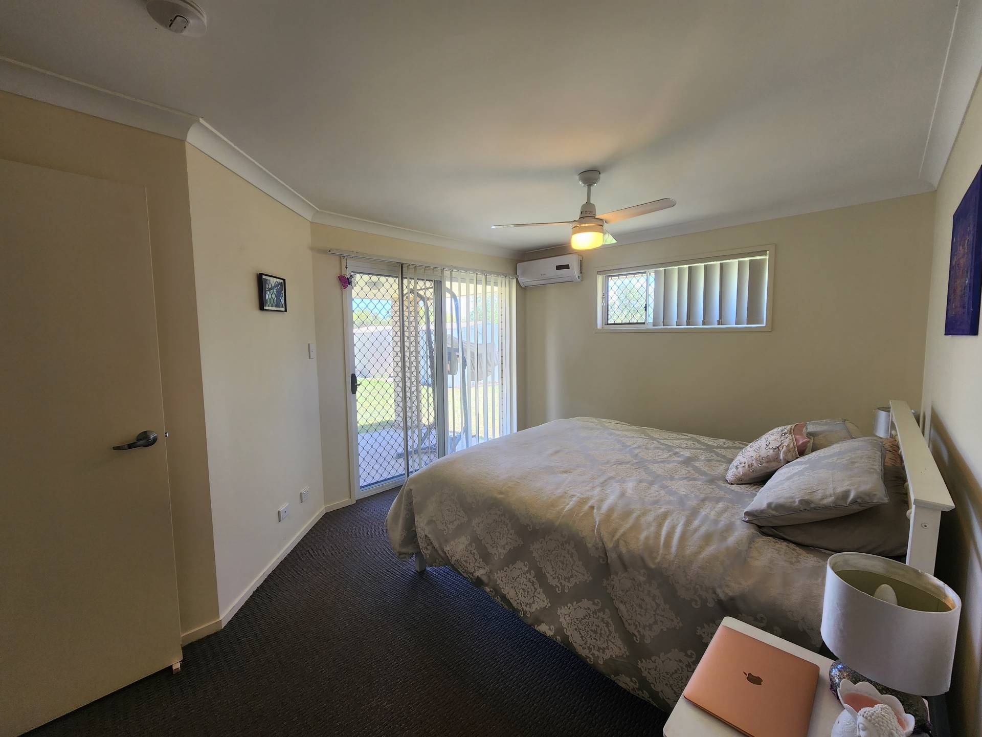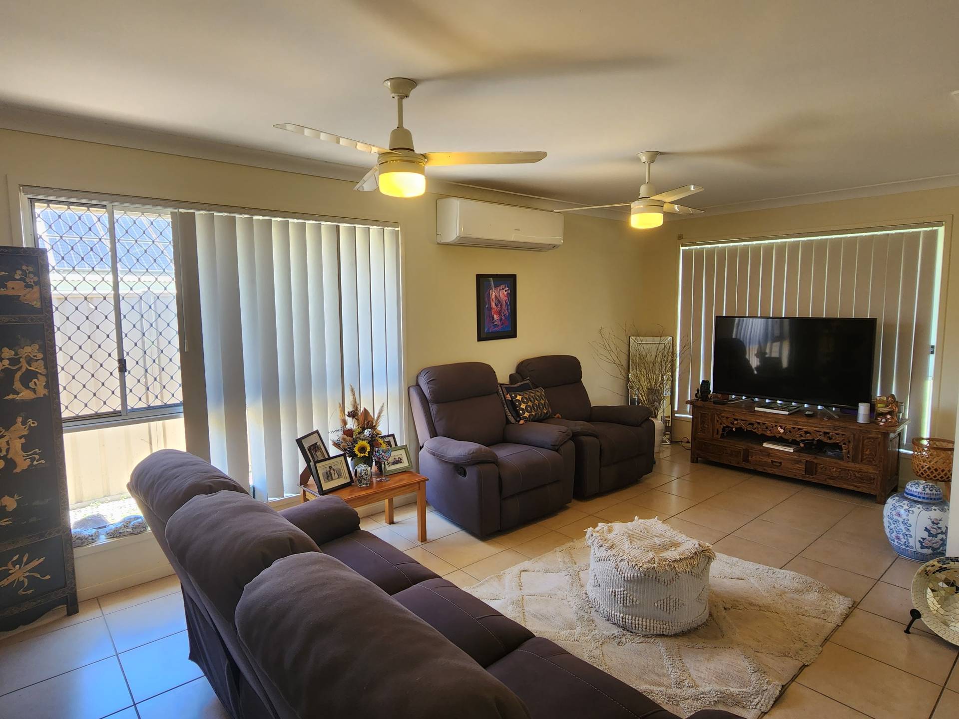 It is so good to have great tenants.  This house presented clean and tidy on a moment's notice to take photos. There are four air-conditioned bedrooms with the main having an ensuite and walk-in robe, and the other three having mirrored built-in wardrobes.  The fully fenced rear yard has two garden sheds, a patio off the main bedroom and a patio off the lounge.  The double garage is accessible through the house or the remote controlled garage door. The main bathroom comes in three parts, bath and shower in the one, toilet in the other and vanity separate from both.  The long-term tenant is paying $380 per week.