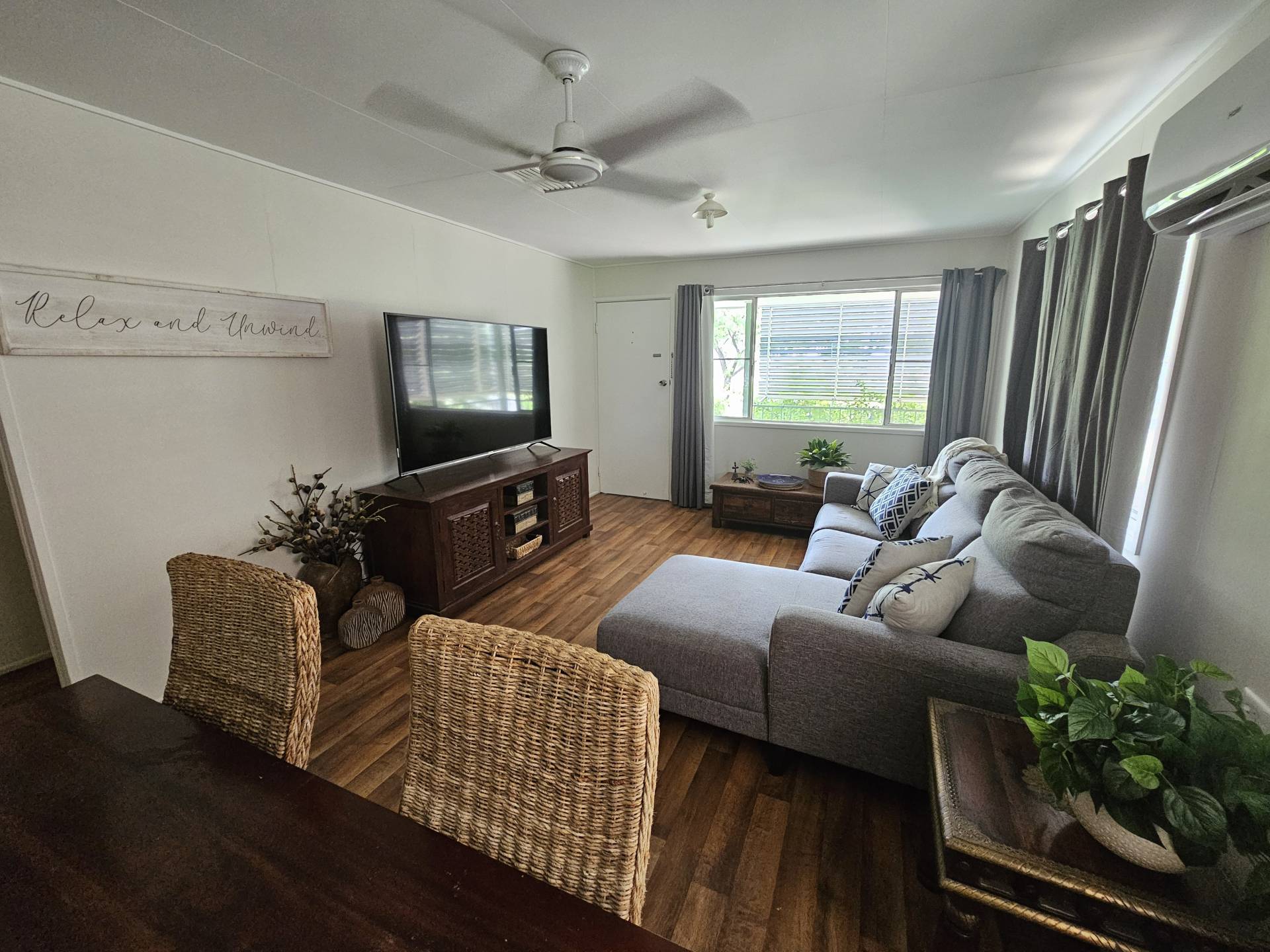 * Private, shaded full length front verandah setting which is a lovely spot to sit and enjoy your morning coffee or, take in one of Moura's glorious sunsets at the end of the day