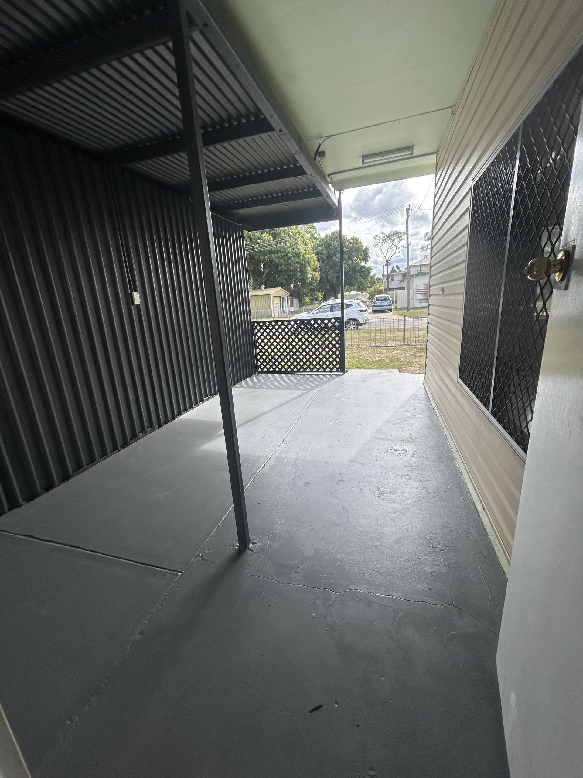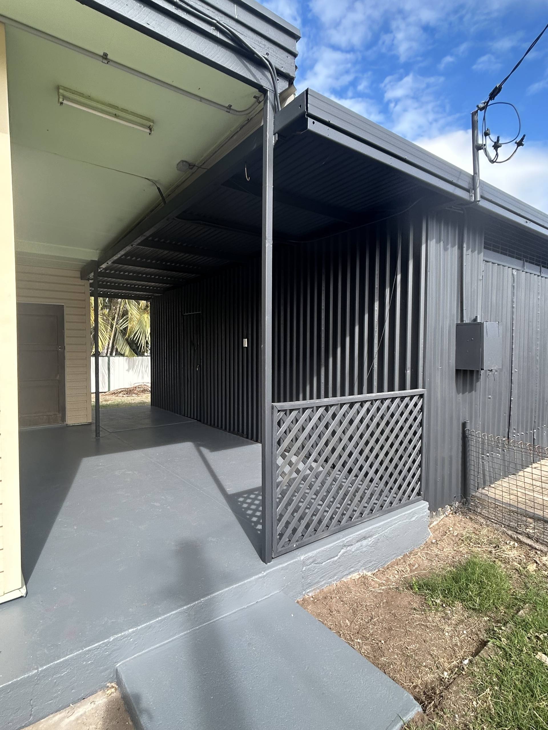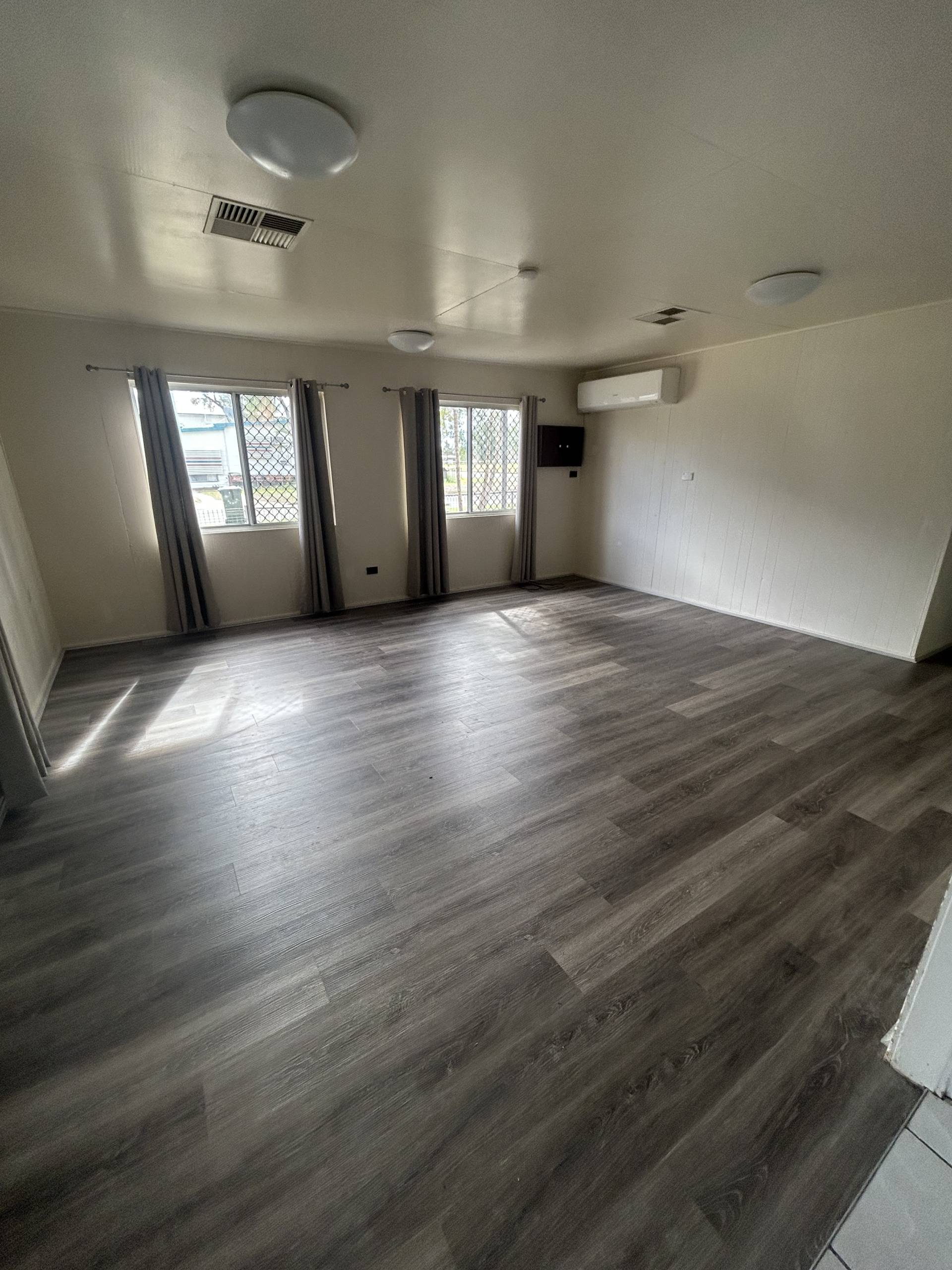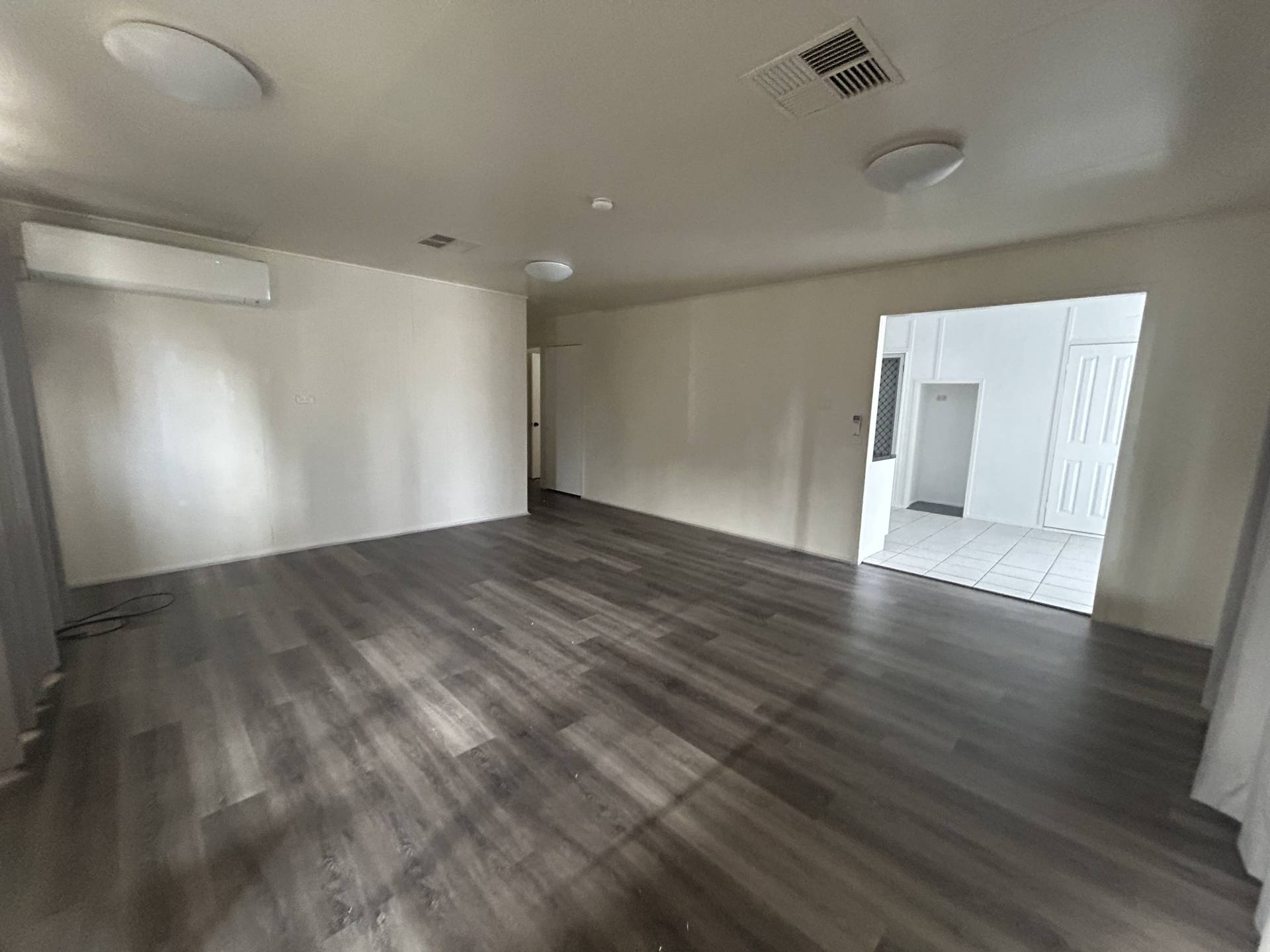 Sitting on a good-sized corner block, this three bedroom, fully air-conditioned home has a large, very neat, tiled kitchen.  The lounge and hallway have floating floors and the bedrooms have carpet. The bathroom is tiled and there is a very large, internal laundry with concrete floor just outside the kitchen. This one is different with its garage/shed, outdoor entertainment area and garden shed. Situated within walking distance to schools, medical centre, and town. The yard is fully fenced. Vacant possession or investment property.