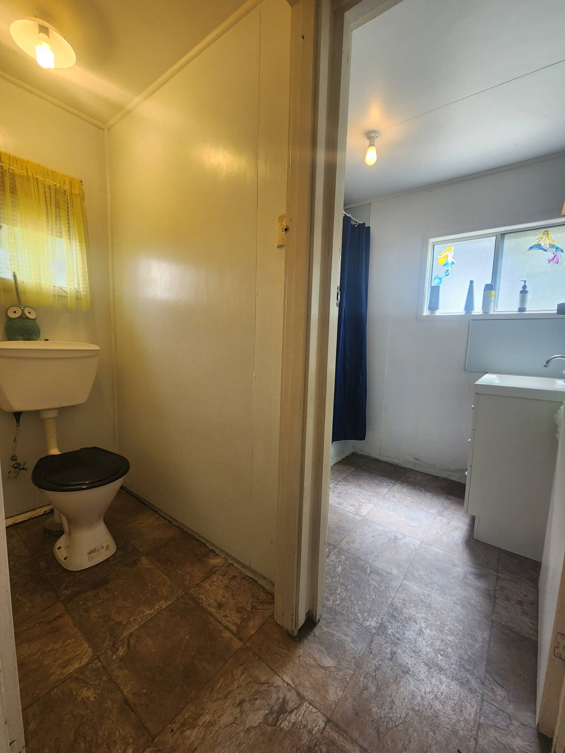 This two-bedroomed house overlooks farmland, bringing wildlife to your doorstep. Look past the furniture (which will be removed) and see the  good polished floorboards, with carpet in the second bedroom.  You get a very large lounge with a small patio facing farmland, and a large kitchen.  This will sell as is and can rent for $280/week.  Do a few repairs (we have the mainentance people ready to go) while you earn the income. The builder has his ducks in a row, and can provide any info needed on works to be done.