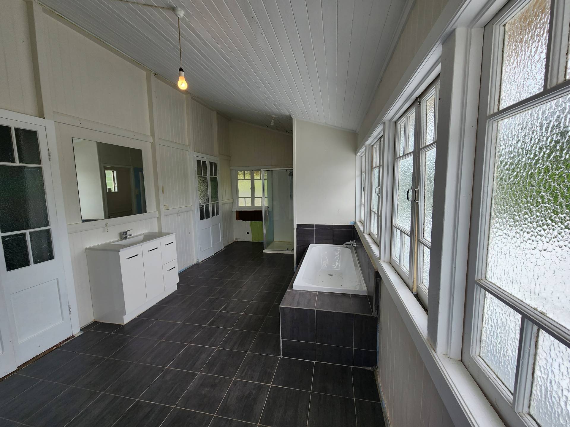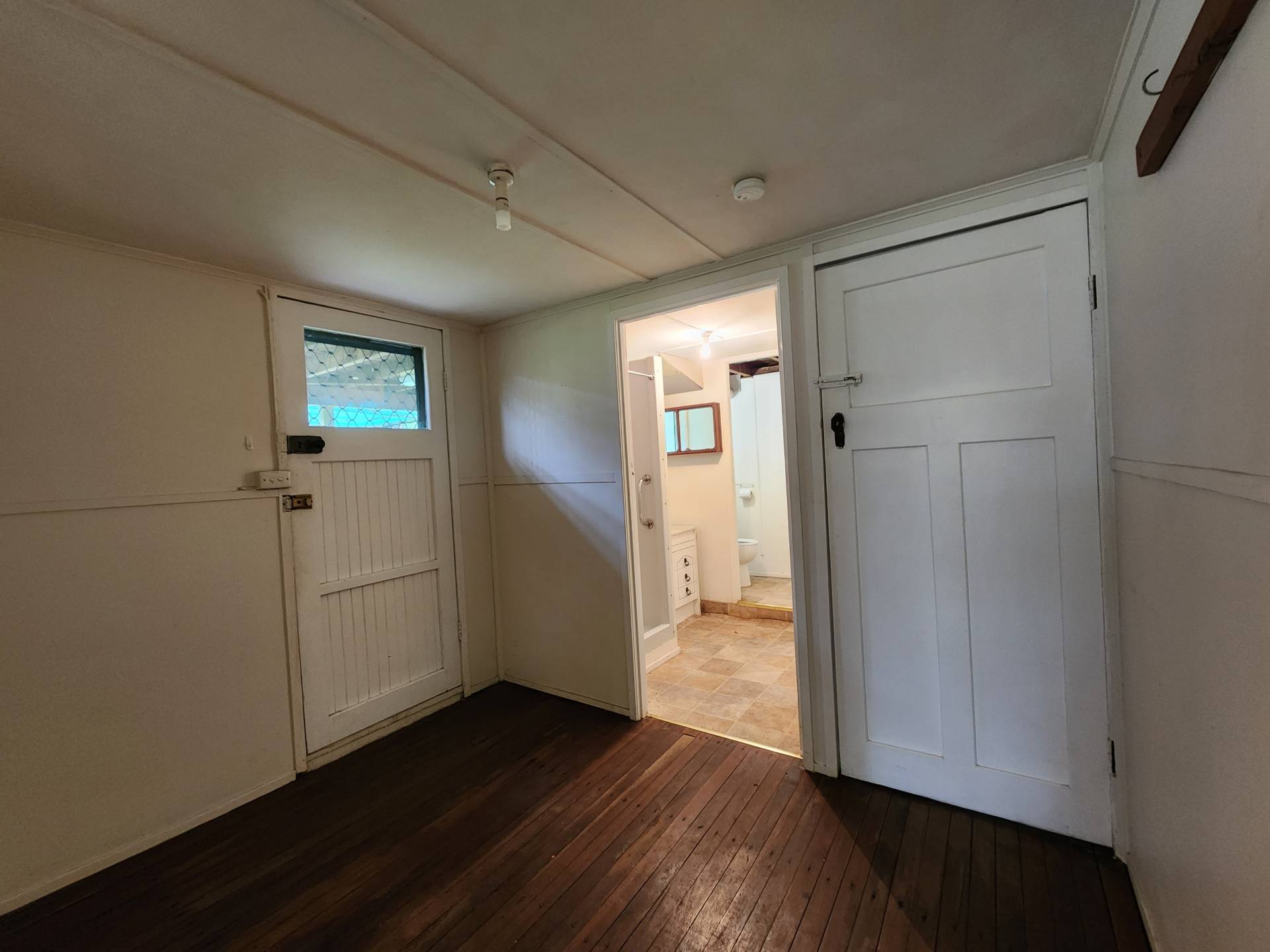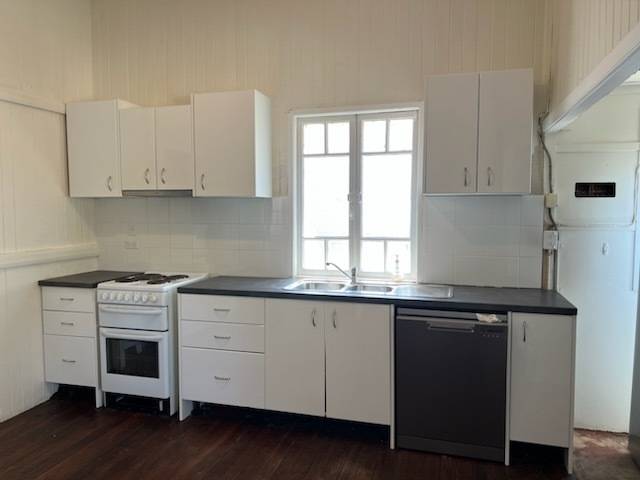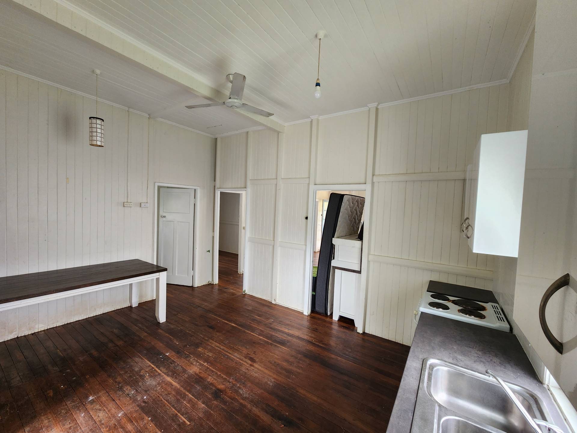 On this (approx) 2,024m² block, straight opposite the Baralaba School, you will find a  gorgeous 1940's Queenslander.  Some renovations have been made. The bottom of this house has been transformed into a two bedroom unit, with its own seperate front and back entrance. kitchen and bathroom.  There is also a small enclosed storeroom at the bottom with another entrance to this unit.  Upstairs there is a three bedroom house, also with own front and rear entrances.  There is a lovely, very big bathroom with bath, shower and toilet - and is accessible from every bedroom. You can rent out the one part while living completely private in the other, or sit back and allow us to work while you make the money