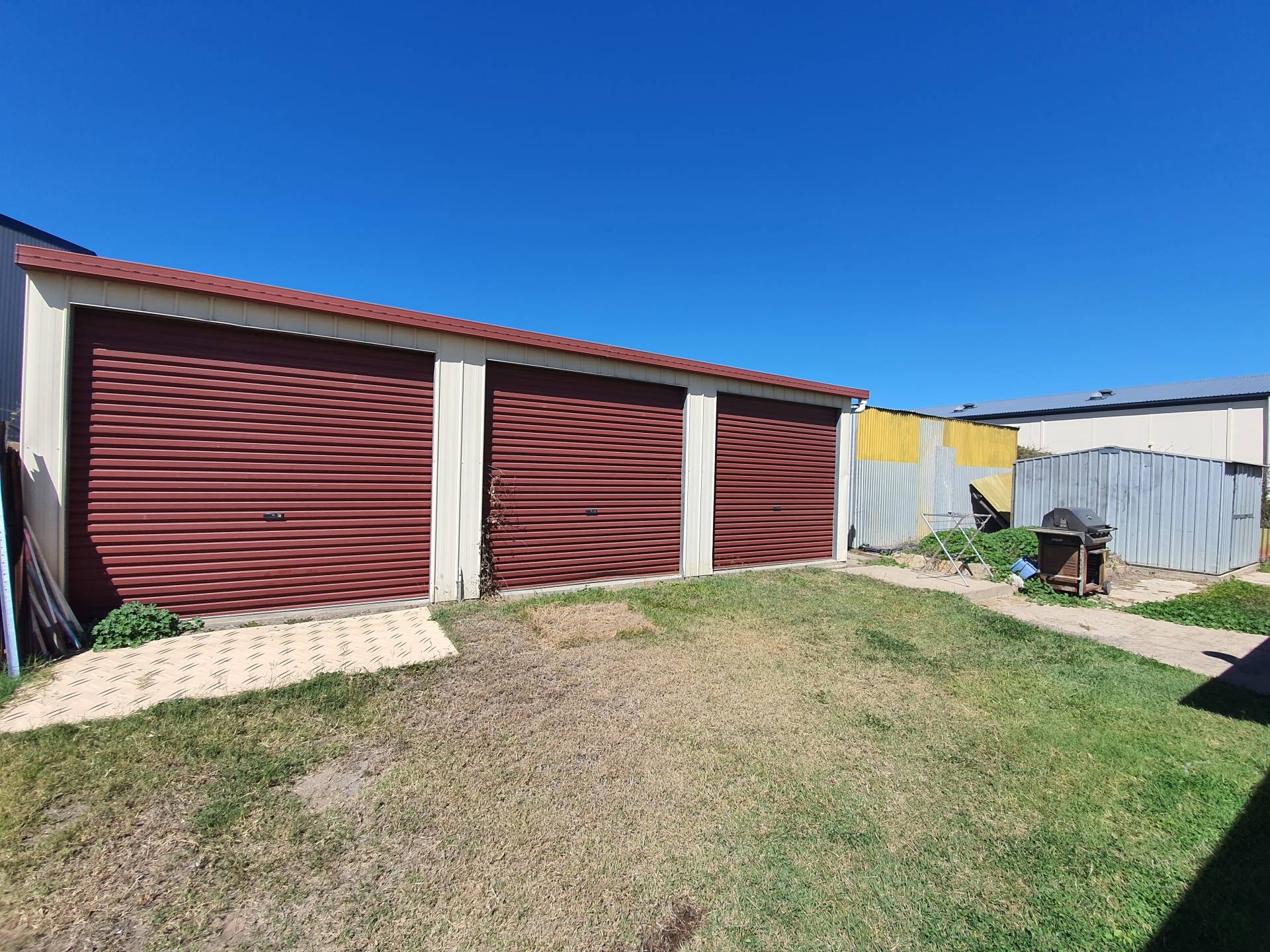 This property has two street access:  the workshed is in Dawson Highway, with the three bedroom house in Okano Street.  The house yard has a three-bay shed and garden shed and is fully fenced.  The workshed is approx 300m² with a small kitchen / counter area and power.  Both properties are periodically tenanted, making for a good investment, but can also be bought with vacant possession.